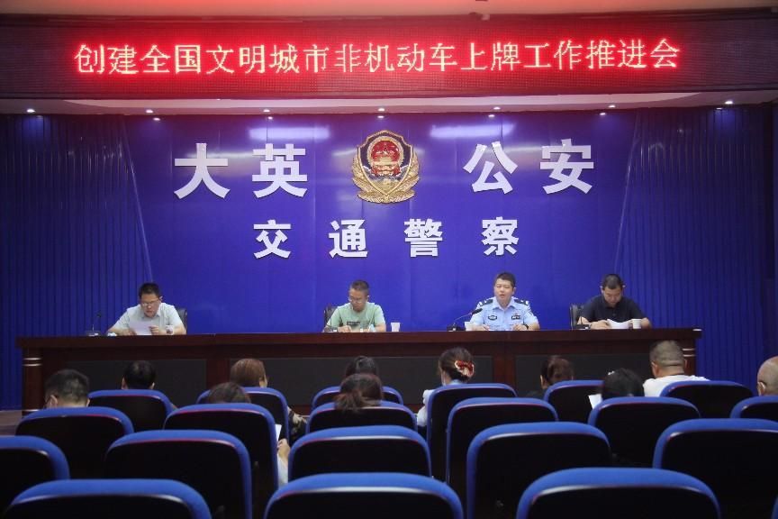 9月16日,大英縣創(chuàng)建全國(guó)文明城市非機(jī)動(dòng)車上牌工作推進(jìn)會(huì)召開。縣創(chuàng)建辦、縣公安局交警大隊(duì)、鹽井街道、蓬萊鎮(zhèn)分管領(lǐng)導(dǎo),16個(gè)城市社區(qū)和青龍坡村負(fù)責(zé)同志參加會(huì)議。